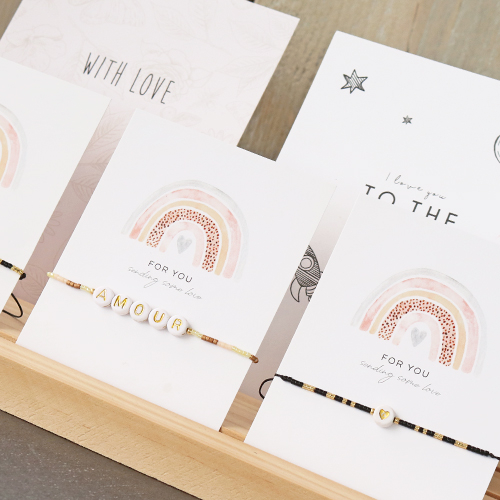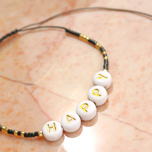 Vous aussi vous êtes complètement dingue de ces adorables bracelets minimalistes avec des perles ? Alors achetez les tous derniers bracelets Miyuki tendance avec des perles lettres. Ces bracelets sont composés de perles Miyuki et de perles lettres enfilées sur du fil macramé. Chaque bracelet est pourvu d’un nœud coulissant en macramé. Cela vous permet d’ajuster la longueur des bracelets. Les bracelets contiennent chacun leur propre texte en perles lettres et sont disponibles en deux couleurs différentes. Astuce ! Ils se combinent délicieusement avec d’autres bracelets et peuvent se présenter, ou s’offrir, sur une carte à bijoux.