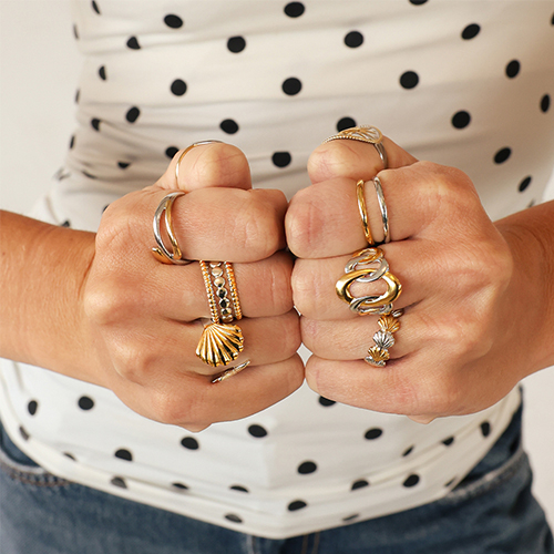 • Bagues en acier Inox étoile de mer et coquillage Argenté-oré