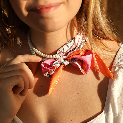 • Bandana foulard avec fleur Orange-lilas-rouge