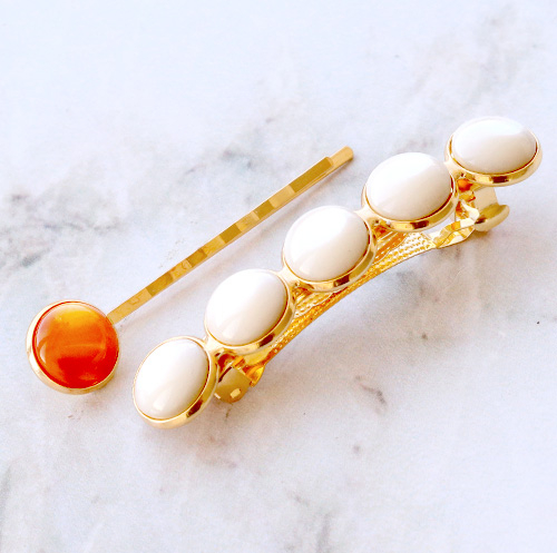 Vous êtes à la recherche de barrettes à cheveux tendances ? Découvrez vite notre dernière collection d'accessoires pour cheveux. En plus des magnifiques barrettes prêtes à porter, nous proposons également des barrettes avec serti pour cabochons que vous pouvez choisir vous-même. En plus des barrettes, vous trouverez également de nouvelles perles coquillages Cauri imprimées, idéales toutes vos créations de bijoux ! Optez pour des boucles d’oreilles tendance en raccordant un coquillage Cauri à une créole à l’aide d’un anneau brisé. Pour les bracelets et colliers nous avons utilisé du fil macramé. Tous ces articles tendance se trouvent dans notre nouvelle collection, maintenant disponible !