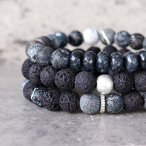 Pierres naturelles Calcédoine (Quartz) et Agate 8mm Anthracite