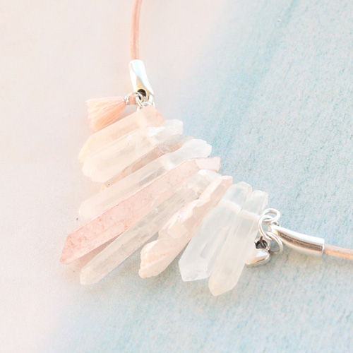 Boucles d'oreilles et colliers avec des pierres naturelles en forme de goutte et du quartz