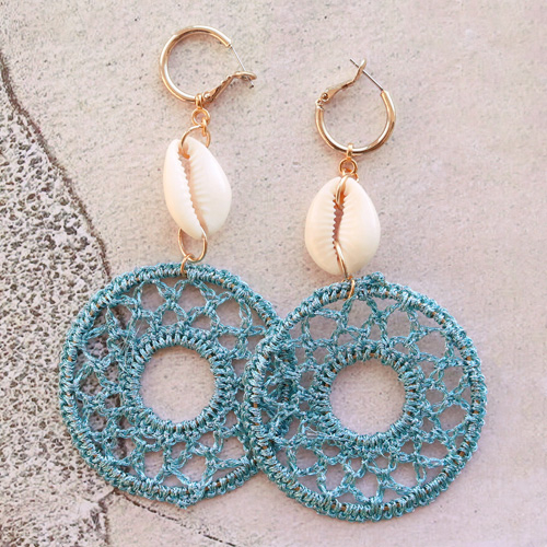 Boucles d’oreilles en style soutache avec pendentifs au crochet et métal DQ