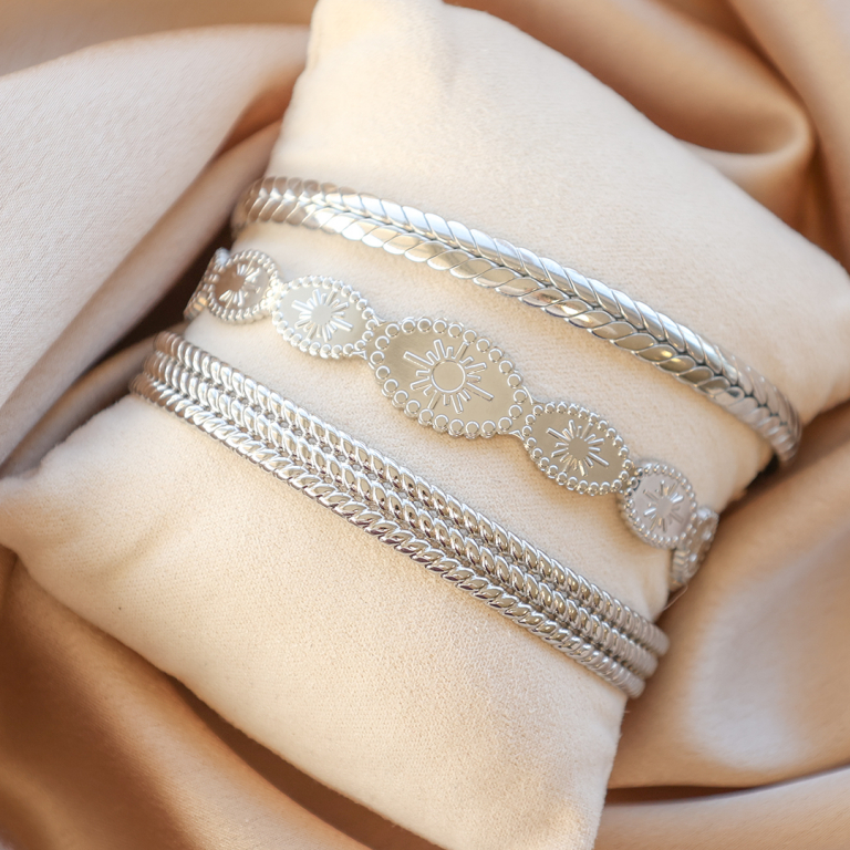 • Bracelets en acier Inox jonc soleil Argenté