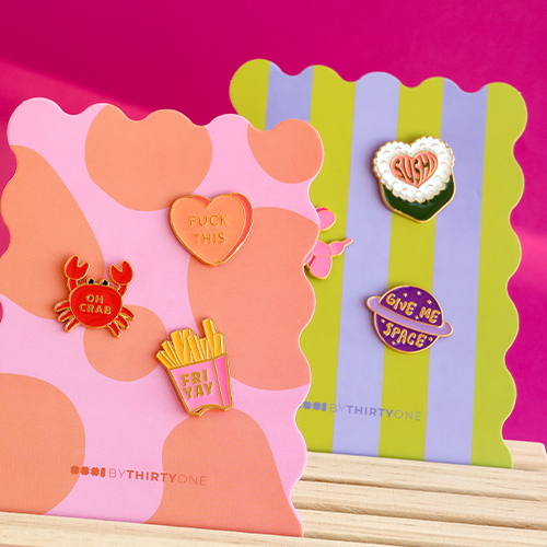 BY31® Pins "Fuck this" / "Oh crab" / "Fri yay" sur la carte Orange-rose multicolore-rouge-jaune