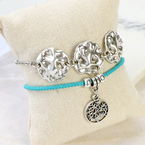Avec le métal DQ, vous pouvez créer de nombreux styles différents de bijoux. Confectionnez par exemple un magnifique bracelet en enfilant des perles en verre ou en pierre naturelle sur un élastique et assortissez-les de perles DQ. Les perles en métal DQ peuvent également être enfilées sur un cordon ou un cuir très tendance. Ajoutez un fermoir magnétique et votre bracelet tendance est fin prêt ! Autre astuce : combiner notre cuir de 2 mm avec un connecteur jaseron. Pour parachever votre bijou, accrochez vos breloques en métal DQ préférées au jaseron. Amusez-vous bien !