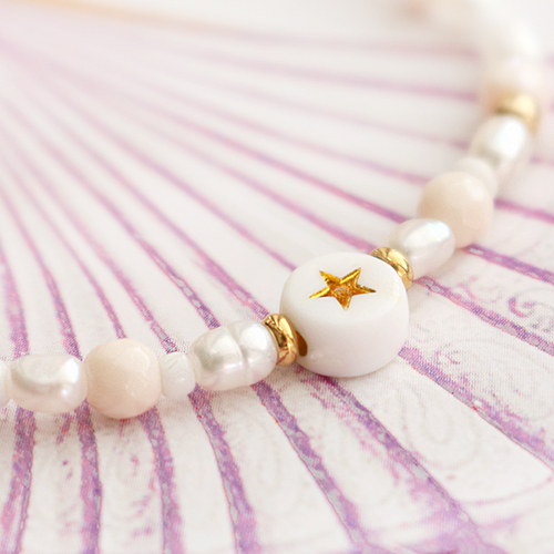 Le moment est venu de vous montrer créatif et de vous lancer avec les perles alphabet ! Vous pouvez combiner ces fameuses perles d’une multitude de façons. Cette fois, nous avons choisi de confectionner des bracelets. Vous pouvez enfiler les perles sur, par exemple, du fil élastique ou du fil macramé. Les deux matériaux sont parfaits pour la réalisation de ces bracelets. Nous avons utilisé dans les bracelets un mélange de perles en pierre naturelle, de perles en acier inox, de perles d’eau douce et de rocailles. Cela crée un look fun, coloré et branché. Les perles alphabet se combinent également à merveille avec des perles et du jaseron en acier inox. Vous pouvez enfiler les perles alphabet avec des perles dorées sur un clou à tête ronde et ainsi créer un connecteur que vous pouvez attacher au jaseron. Ce bracelet est également idéal pour être porté conjointement avec un bracelet bangle. Bonne chance !
