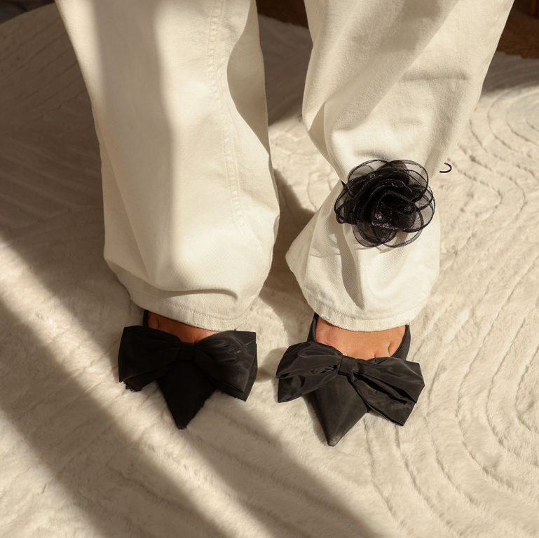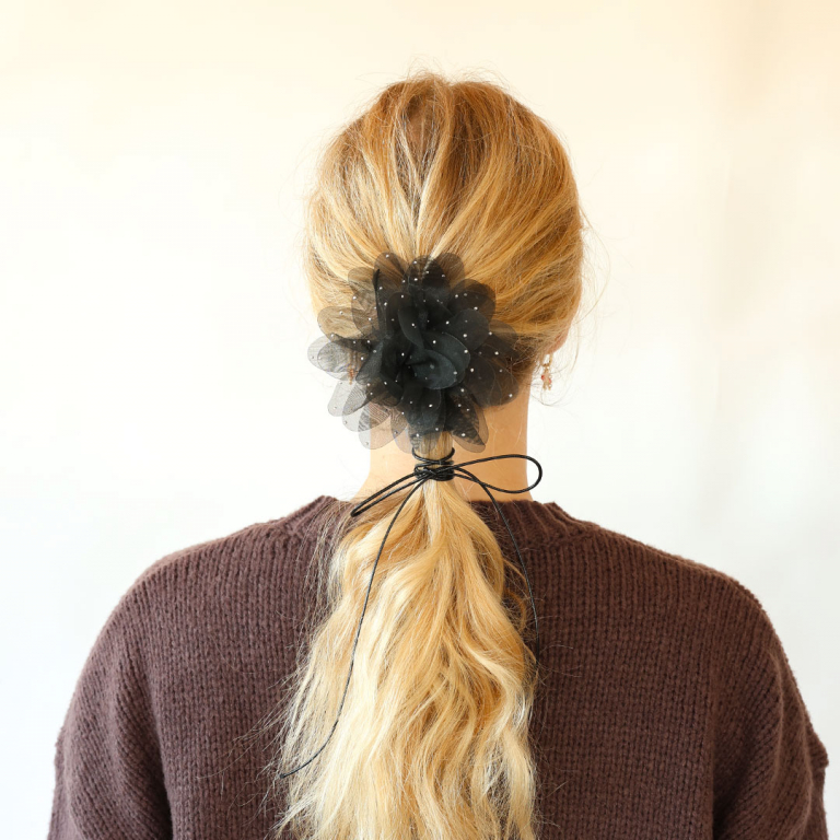 • Ras de cou fleur en organza avec strass Noir-argenté