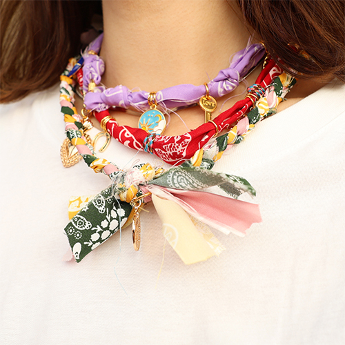 Cette nouvelle collection de bandanas offre des possibilités infinies! Disponible en plusieurs couleurs et d'une longueur de 3 mètres. Parfait pour créer des colliers. Combinez les rubans avec des breloques et des nœuds pour réaliser des colliers et bracelets uniques. Ne tardez pas, créez les plus beaux bijoux avec des bandanas, le must-have du moment!