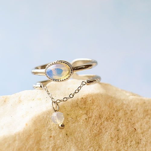 Bagues en acier Inox avec pierre naturelle Doré-blanc laiteux