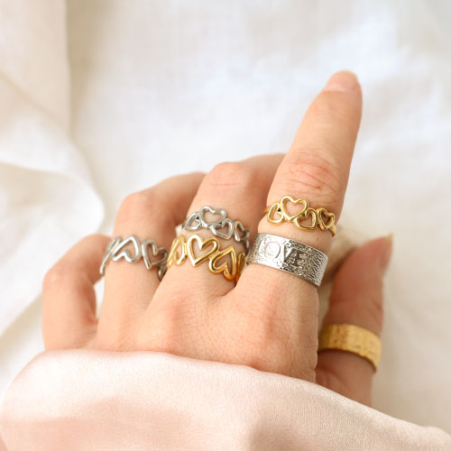 Découvrez notre nouvelle collection de bagues en acier inoxydable prêtes-à-porter ! Parfaites pour compléter avec amour votre collection de bijoux. Les bagues sont disponibles en forme de cœur romantique ou avec le charmant texte LOVE. Vous ne voudrez pas manquer cela !