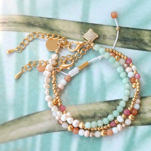 Les perles en pierre naturelle confèrent à votre bijou un aspect luxueux et unique. La nouvelle collection de perles en jade va vous permettre de créer des bracelets tendance avec un look sophistiqué. Commencez par choisir la couleur et la taille des perles en jade que vous souhaitez utiliser. Choisissez ensuite des articles qui se marient harmonieusement avec les perles en pierre naturelle de jade. Que diriez-vous de perles en métal DQ de couleur or, de perles d’eau douce et de perles à facettes ? Vous pouvez créer un superbe bracelet en enfilant une belle combinaison sur du fil macramé ou du fil métallique. Complétez le bracelet avec un fermoir mousqueton ou utilisez la technique du nœud plat macramé. Ajoutez quelques perles à l’extrémité du bracelet et votre bijou est terminé. Avec quelles perles de jade allez-vous créer les plus belles combinaisons ?