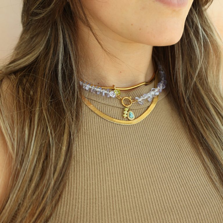 Breloques en acier Inox goutte avec pierre naturelle Doré-turquoise