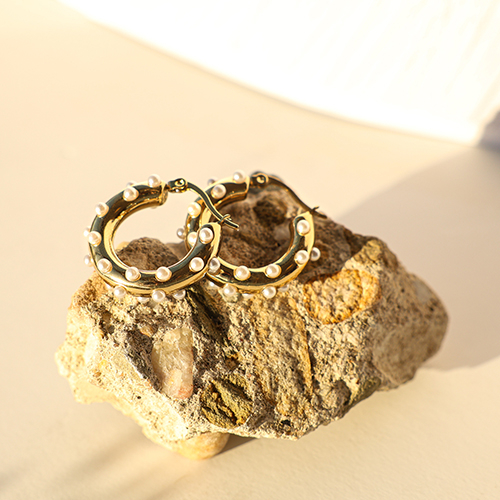 Boucles d'oreilles / créoles en acier Inox avec imitations perles Doré