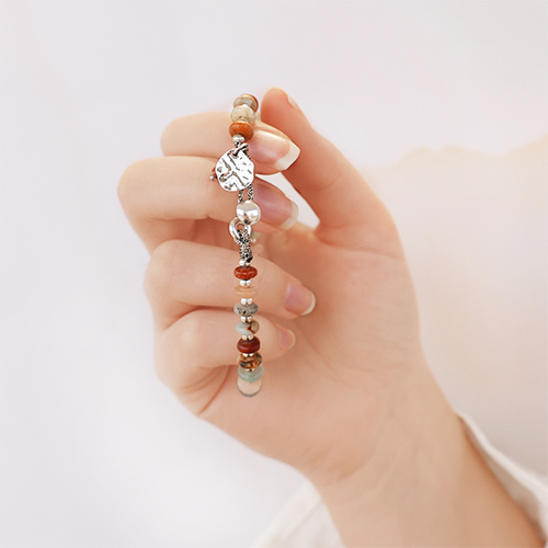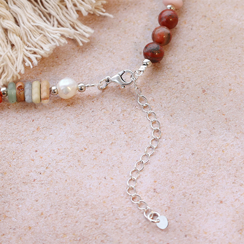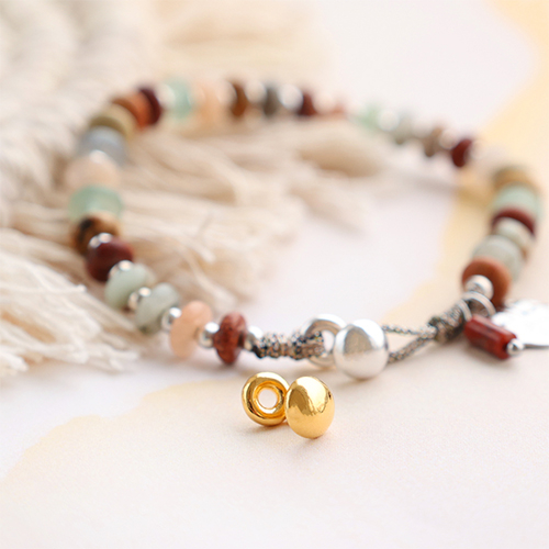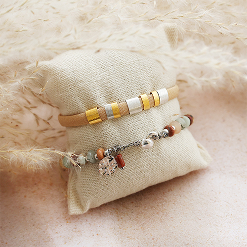 • Pierres naturelles perles Jaspe Dalmatien tube Greige noir