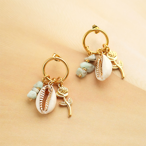 • Perles coquillage specials pendentif Cauri Crème beige-doré