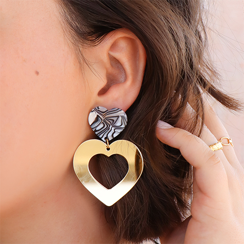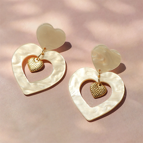 Boucles d'oreilles en acier Inox/puces d’oreilles martelées coeur avec anneau Doré