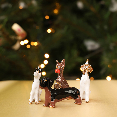 Breloques en métal chien Doré-marron foncé-rouge