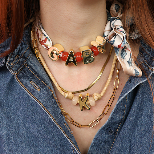 Envie d’utiliser des lettres pour votre prochaine collection de bijoux ? La nouvelle collection de perles lettres en acrylique est disponible en doré, argenté ou en mélange de couleurs et se combine facilement avec nos perles acryliques aux autres formes. Mix & match pour des bijoux ludiques et joyeux ou des ensembles sobres et neutres.