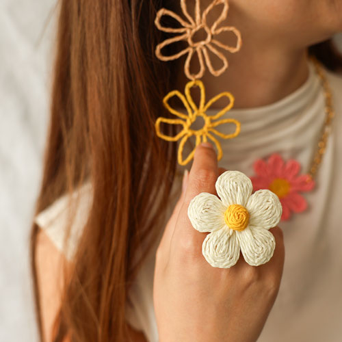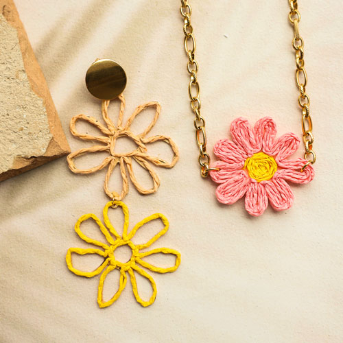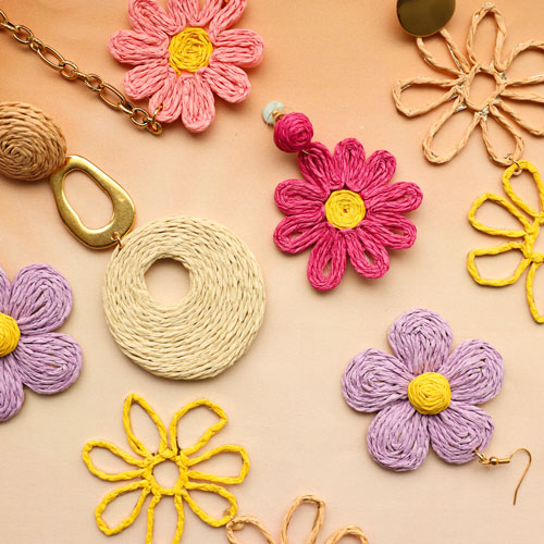 Créez des colliers, boucles d'oreilles et bagues avec des pendentifs et articles en raphia
