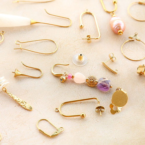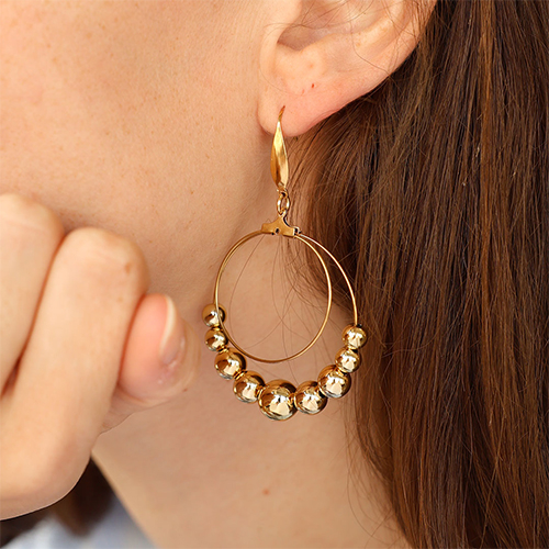 • Apprêts en acier Inox boucles d'oreilles dormeuses avec anneau Doré