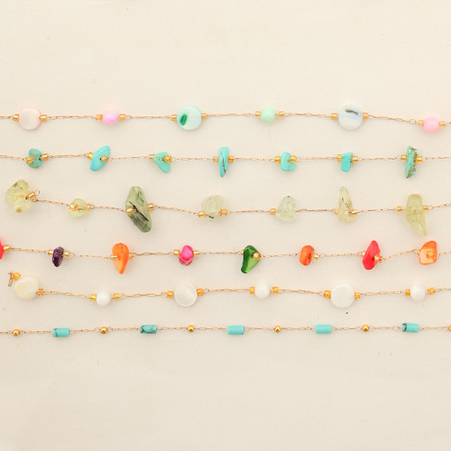 Apprêts en acier inox chaîne maille jaseron Mélange de pierres naturelles rondelles Doré-multicolore