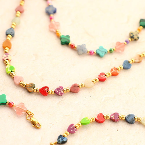 Découvrez cette nouvelle collection de perles en pierre naturelle en forme de cœur et de trèfle. Parfaites pour créer des bijoux élégants, elles sont disponibles dans de magnifiques couleurs telles que le rouge, le bleu, le vert, le rose et le beige. Utilisez les perles, par exemple, dans des colliers ou comme breloques et combinez-les avec du jaseron, du fil métallique et des perles miyuki pour une touche unique !