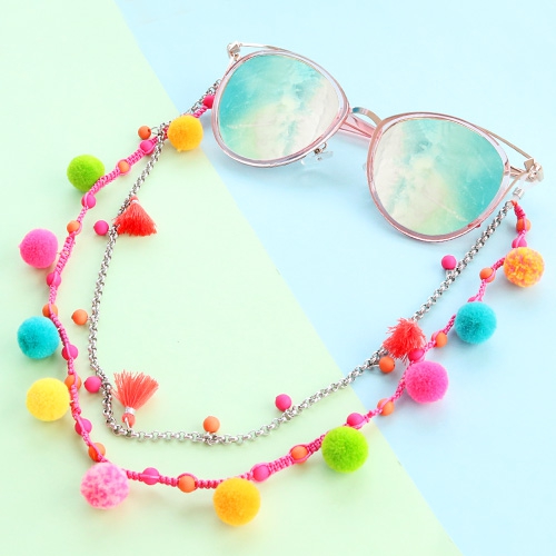 Vous allez certainement tomber amoureux de ces pendentifs pompons. Ils sont à la fois doux, très colorés et vous pouvez les utiliser pour de nombreuses créations différentes ! Pensez par exemple de les attacher aux cordons à lunettes ou, en les combinant avec d’autres pendentifs, aux bracelets et chaînes de cheville en maille jaseron ou en cuir DQ. Créez vous-même votre look d’été !!