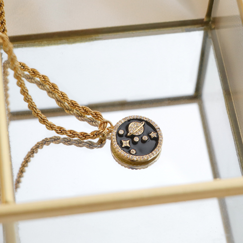 • Métal TQ laiton breloques émaillées lune Doré-noir