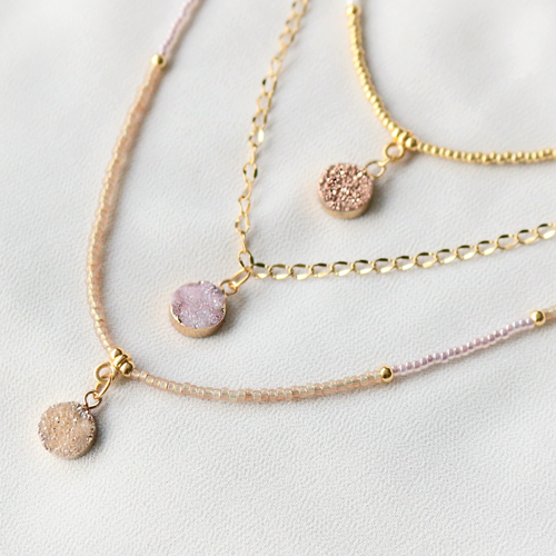 • Pierres naturelles pendentifs 1mm Rose glace-doré
