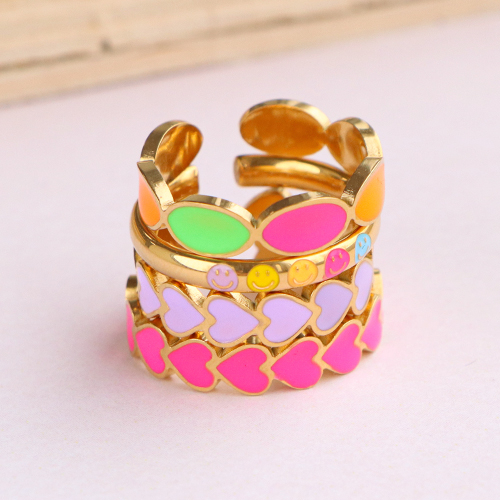Bagues en acier inox émaillées coeur Multicolore néon-doré