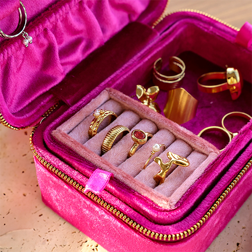 BY31® Boîte à bijoux velours Fuchsia-rose vintage