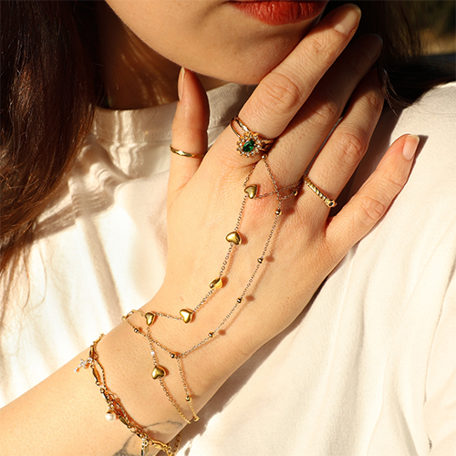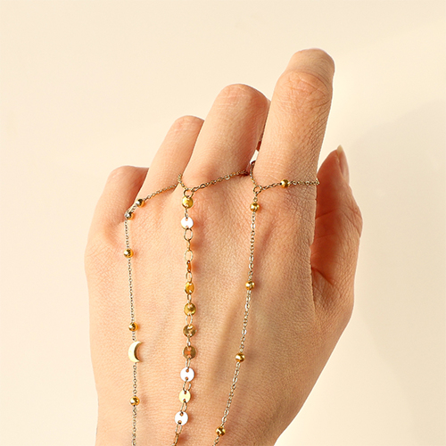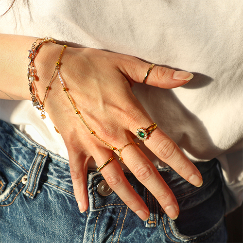 Notre nouvelle collection de chaînes de main en acier inoxydable est idéale pour les créateurs de bijoux souhaitant enrichir leur assortiment rapidement et avec style. Disponible en plusieurs variantes avec pierres, cœurs, lune et étoile, parfaitement dans la tendance printemps été. Prêtes à porter, en acier inoxydable et une valeur sûre pour votre collection, découvrez-les dès maintenant.