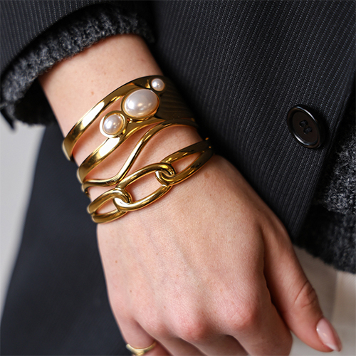 • Bracelets en acier Inox jonc avec imitations perles Doré-blanc