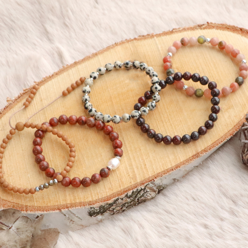 A la recherche d’inspiration pour votre prochaine collection de bijoux? Ces pierres naturelles vont sûrement vous inspirer. Créez de jolis colliers en combinant les pierres naturelles avec des perles DQ et des perles disc en pierre naturelle que vous transformerez en pendentif à l’aide d’un clou à tête plate. Finissez votre collier avec une chaîne d’extension. Pour la réalisation de collier, n’hésitez pas à vous servir d’un bead board pour mesurer la bonne longueur du collier! Créez des bracelets à l’aide du fil élastique ou du fil macramé et combinez les pierres naturelles avec des perles d’eau douce et des perles DQ ou en Inox.