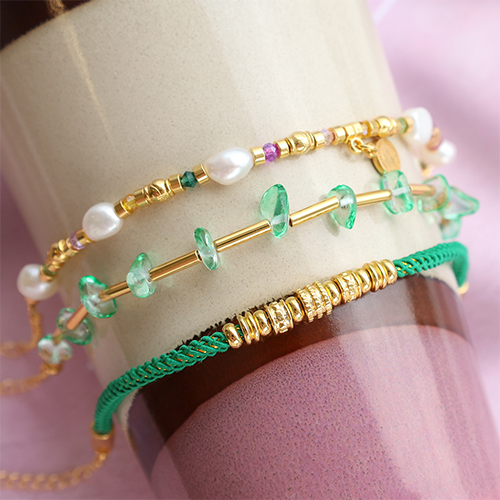 • Cordon tendance 3mm Vert émeraude-doré