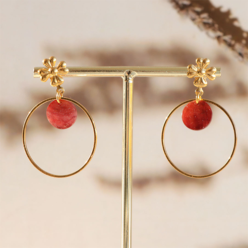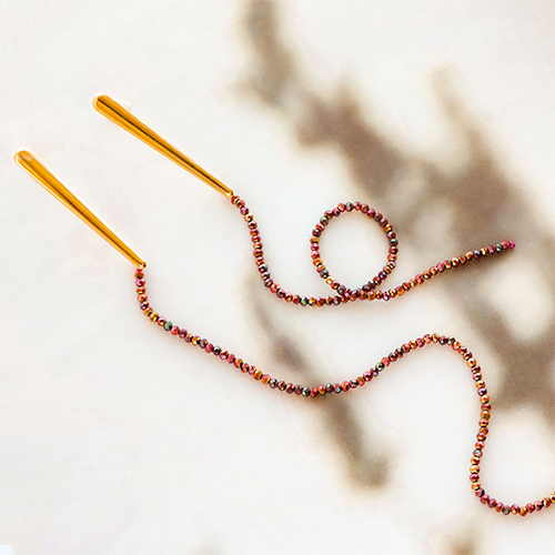 • Pendentifs au crochet avec fil macramé et perles à facettes goutte Doré-rouge métallique