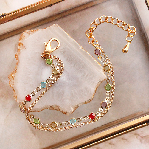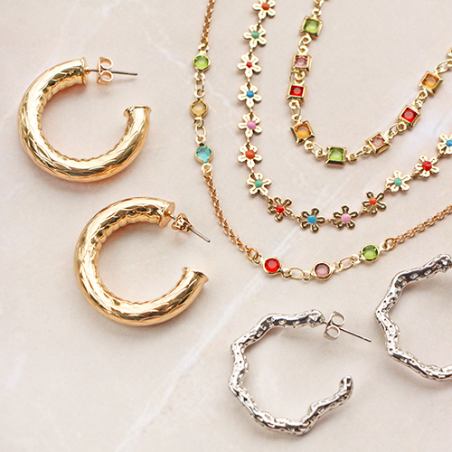 Vous aimez aussi confectionner des bijoux fun et élégants ? Vous allez concevoir les plus beaux bijoux avec le nouveau jaseron en laiton avec du verre crystal glas et de l’émail. Confectionnez un collier en utilisant uniquement le nouveau jaseron en laiton, ou choisissez de le combiner avec d’autres maillons de jaseron en laiton pour un effet des plus originaux. Coupez la longueur souhaitée à l’aide d’une pince coupante et utilisez une pince pointue courbée pour fixer un fermoir mousqueton et une chaînette d’extension en métal DQ. Créez un bracelet double en attachant le fin jaseron et les nouveaux maillons au fermoir. Combinez le bracelet avec d’autres éléments, comme des perles de rocailles et des perles Miyuki enfilées sur un élastique. Mélangez et assortissez les bijoux avec la nouvelle collection de boucles d’oreilles en laiton. Cet ensemble se compose de divers éléments, tels que d’intemporelles créoles et des boucle d’oreilles puce avec du zirconium et une chaînette.