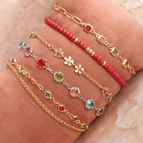 • Métal TQ laiton chaîne maille jaseron fleurs Doré-multicolore
