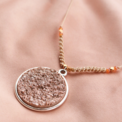 Avec les cabochons Polaris Elements, vous pouvez confectionner toute sorte de bijoux différents. Pour vous donner un peu d’inspiration, nous avons commencé à travailler avec les nouveaux cabochons. Nous avons fait de superbes bracelets en combinaison avec du fil macramé, des perles à facettes et du métal DQ. Commencez par coller un cabochon dans un serti avec deux anneaux. Vous pouvez maintenant nouer le fil macramé à ces sertis, choisir un beau point et passer entre les perles dans une couleur assortie. Bien entendu, vous pouvez aussi faire simple et enfiler les perles sur un élastique. Le cabochon 35mm est parfait pour servir de pendentif à un collier. Confectionnez un collier avec du jaseron et incorporez quelques perles sur le jaseron pour créer un magnifique ensemble.