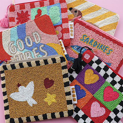 Vous recherchez quelque chose d'unique qui apporte immédiatement de l'ambiance et de la couleur à votre collection ? Nos nouvelles trousses BY31® fabriquées en Inde sont faites à la main, richement décorées de perles colorées et ornées d'imprimés ludiques, dont une jolie version à cœur pour votre collection de Saint-Valentin. Découvrez toute la collection