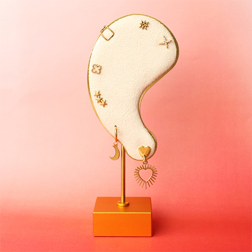 Présentoir bijoux en forme de cœur pour boucles d'oreilles Blanc cassé-doré