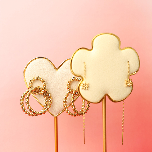 Présentoir bijoux en forme de fleur pour boucles d'oreilles Beige-doré
