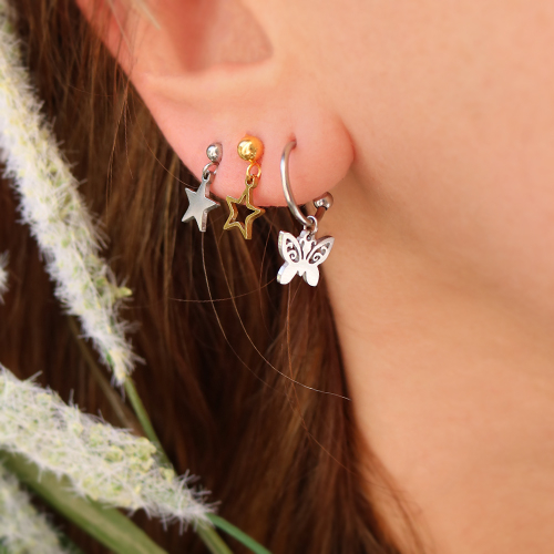 • Papillons boucles d'oreiles en acier inox argenté