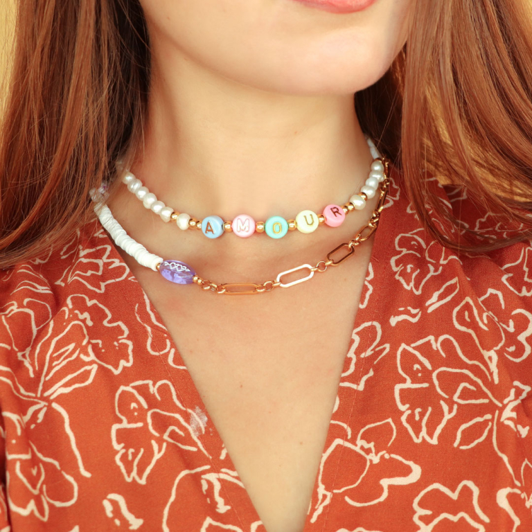 Perles lettres acryliques coeurs Multicolore