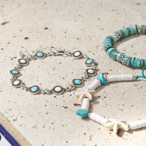 Perles en céramique turquoise rond étoile de mer blanc cassé beige