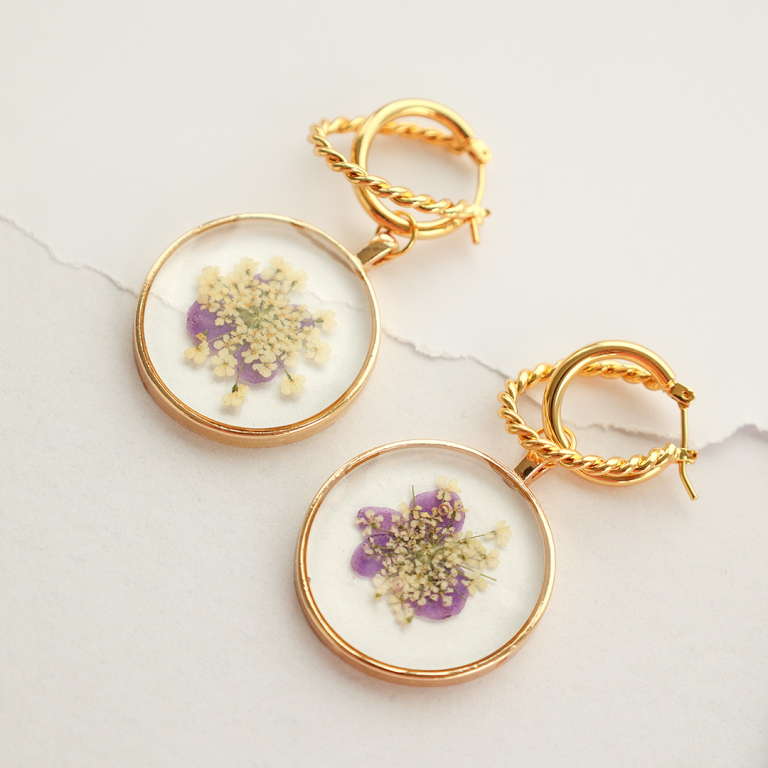 Magnifiques pendentifs et connecteurs avec fleurs séchées à incorporer dans votre prochaine collection de bijoux. Combinez les pendentifs et connecteurs avec du jaseron et des perles d’eau douce pour créer les plus beaux bijoux printaniers.