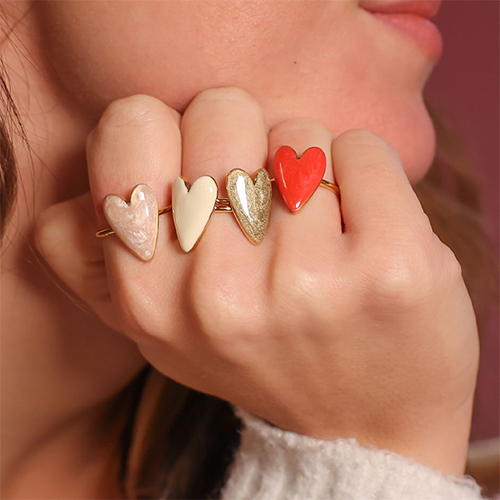Découvrez notre collection envoûtante de bagues en acier inoxydable en forme de cœur. Disponibles dans des couleurs éblouissantes telles que rose, rouge, blanc et or. Parfait pour créer votre collection de Saint-Valentin. Laissez-vous inspirer et choisissez le symbole parfait de l'amour !