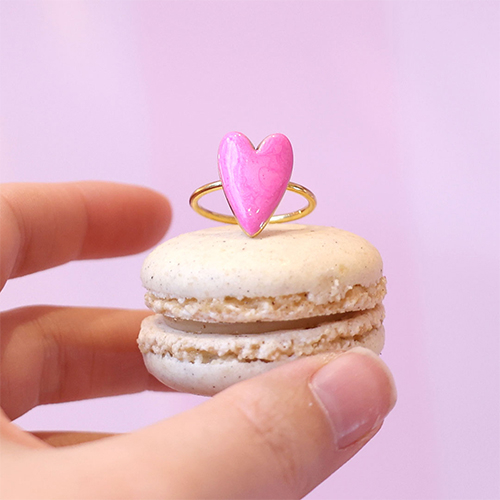 Bagues en acier inox émaillées coeur Doré