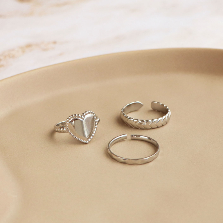Découvrez notre toute nouvelle série de bagues en acier inoxydable, composée de bagues élégantes et tendance ! Disponibles en doré et en argenté, elles complètent parfaitement votre collection de bagues. Elles peuvent être portées seules, entre elles ou combinées avec vos propres créations